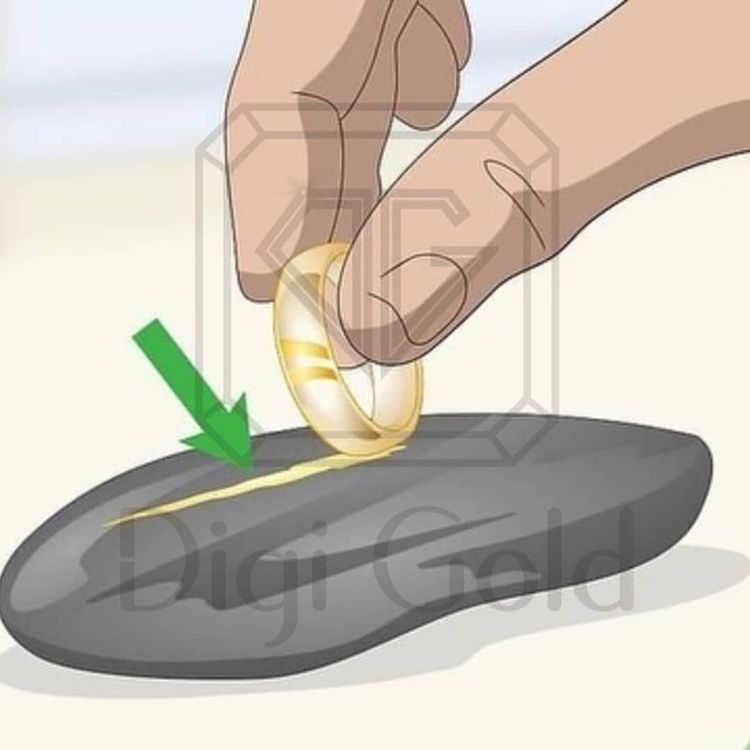 ابتدا فلز مشکوک به طلا را روی سنگ محک (20 بار) میکشیم سپس مقداری تیزآب عیار شده را روی آن میکشیم (به اندازة یک قطره).