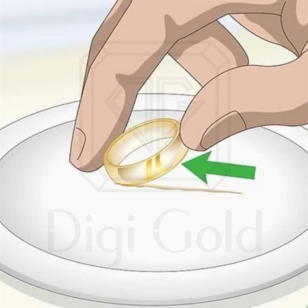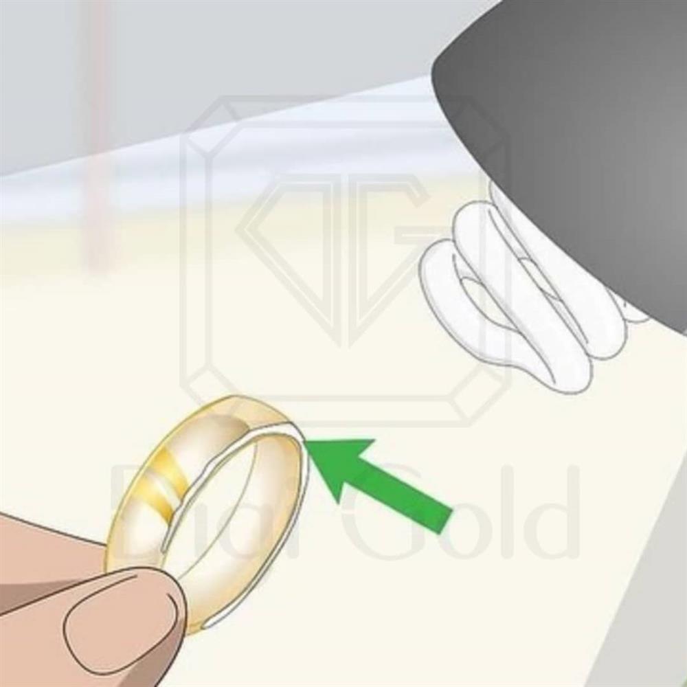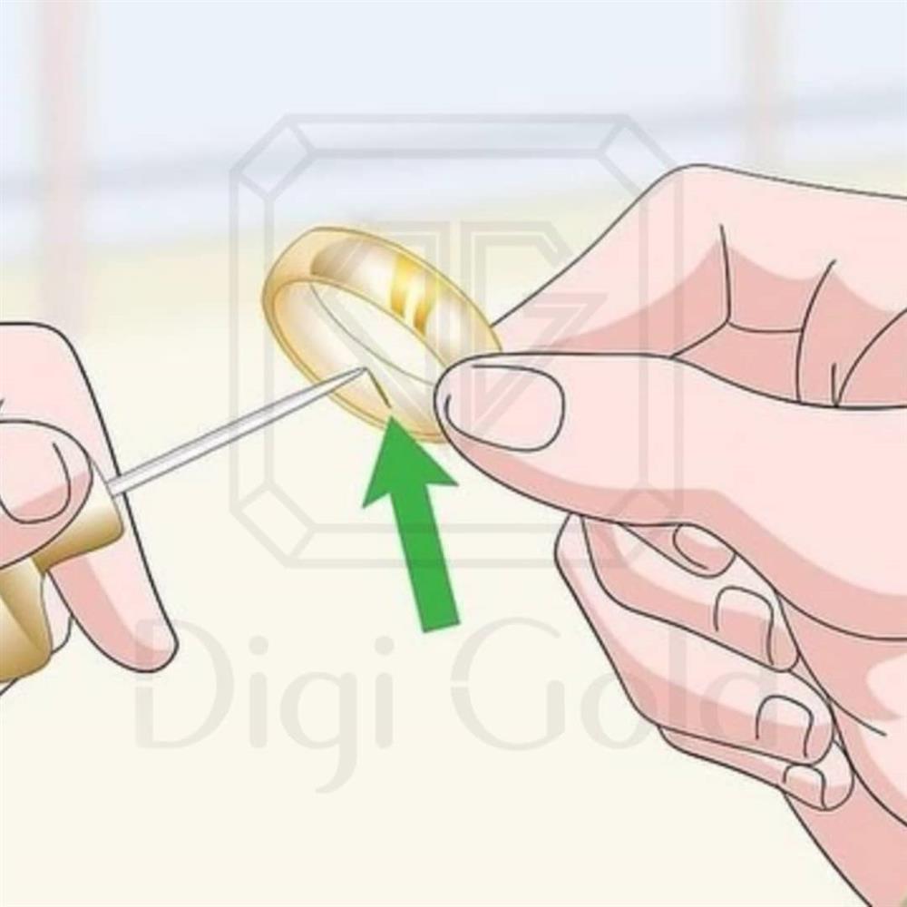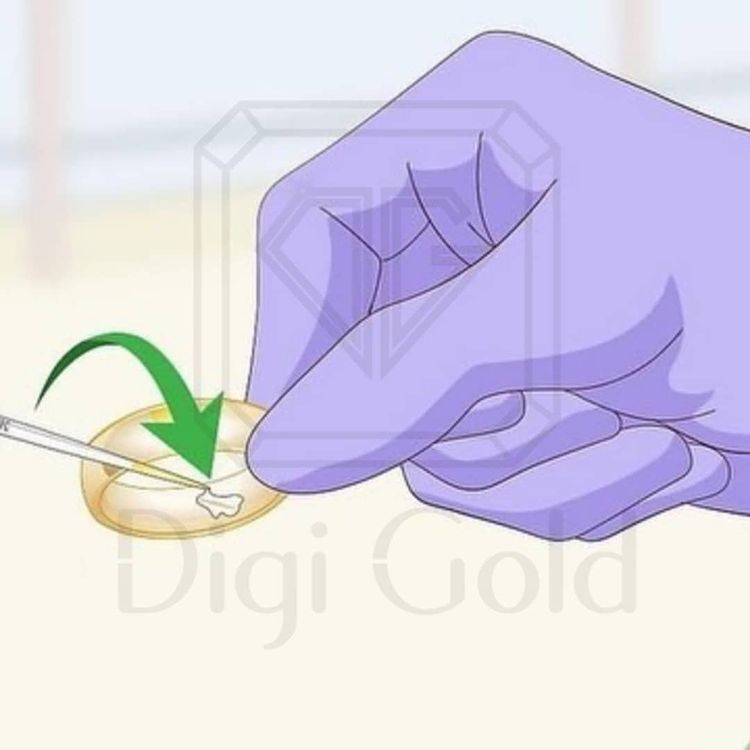 - براثر ریختن تیز آب محل به رنگ سبز به جوش می آید و بعد از پاک کردن تیز آب با یک دستمال محل براق می شود. در این حالت فلز مربوطه طلا نبوده و مقطع براق شده رنگ اصلی فلز را نشان می دهد.