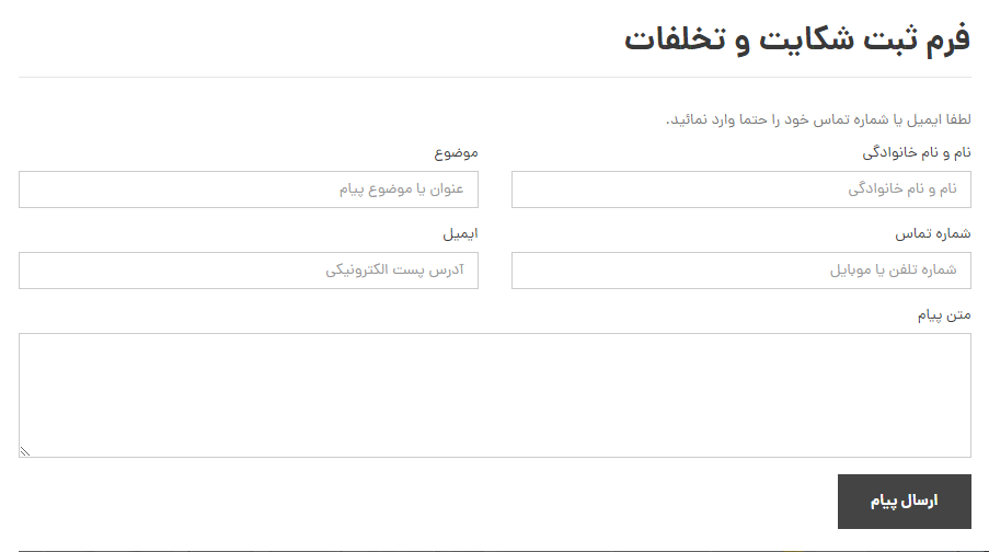 توسط صفحه تماس با ما و ارتباط با شماره های ارائه شده هر گونه شکایت و انتقادی را به مدیریت اعلام کنید و تخلف مورد نظر را ثبت کنید.